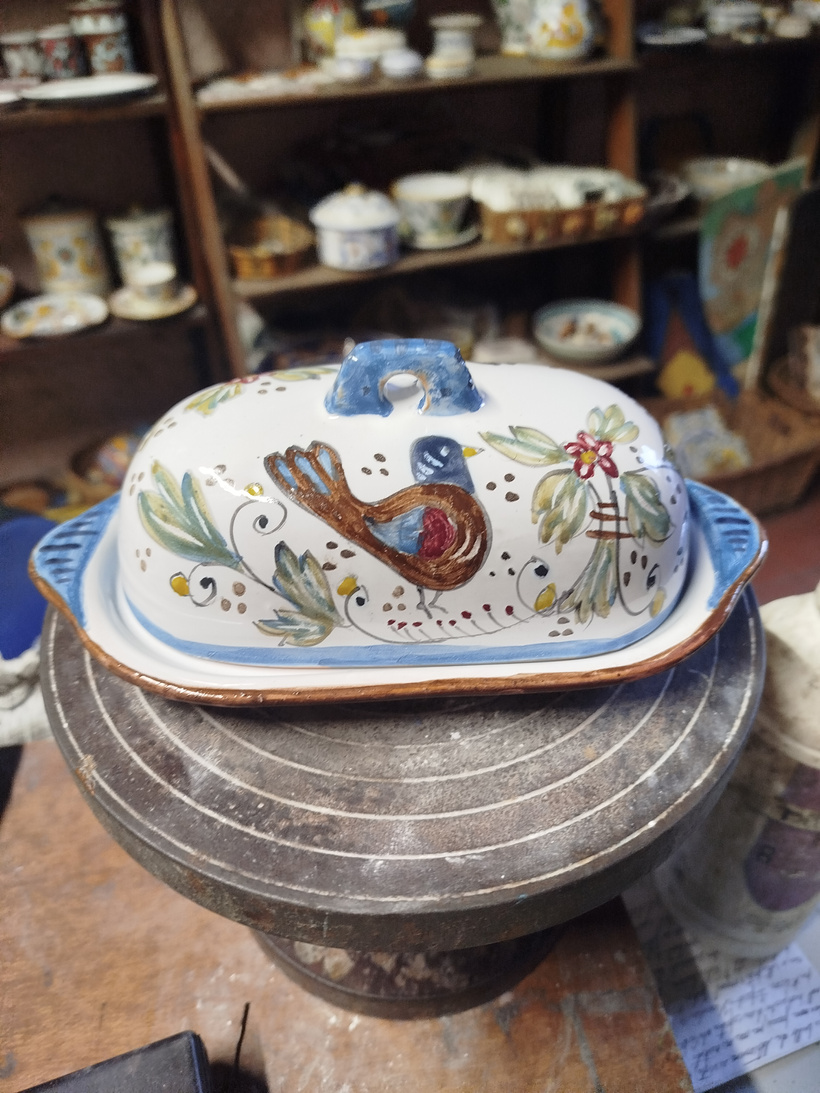 Quello che ho dipinto in stile Raffaellesco è un contenitore con un coperchio dalla base circolare e la forma che si restringe mentre sale, andando a somigliare a una specie di ampolla la quale, oggi, rappresenta lo standard della sua dimensione (20 cm di altezza) praticamente unico per i contenitori di bulbi come aglio, cipolle, peperoncini e altro; solo che, questo genere di oggetto trova compimento definitivo con l’apertura di tre fori, messi a vertici di triangolo di larghezza di circa 1,5 cm., i quali, su questo oggetto, sono assenti per svista, errore o caso da parte del torniante che l’ha realizzato.